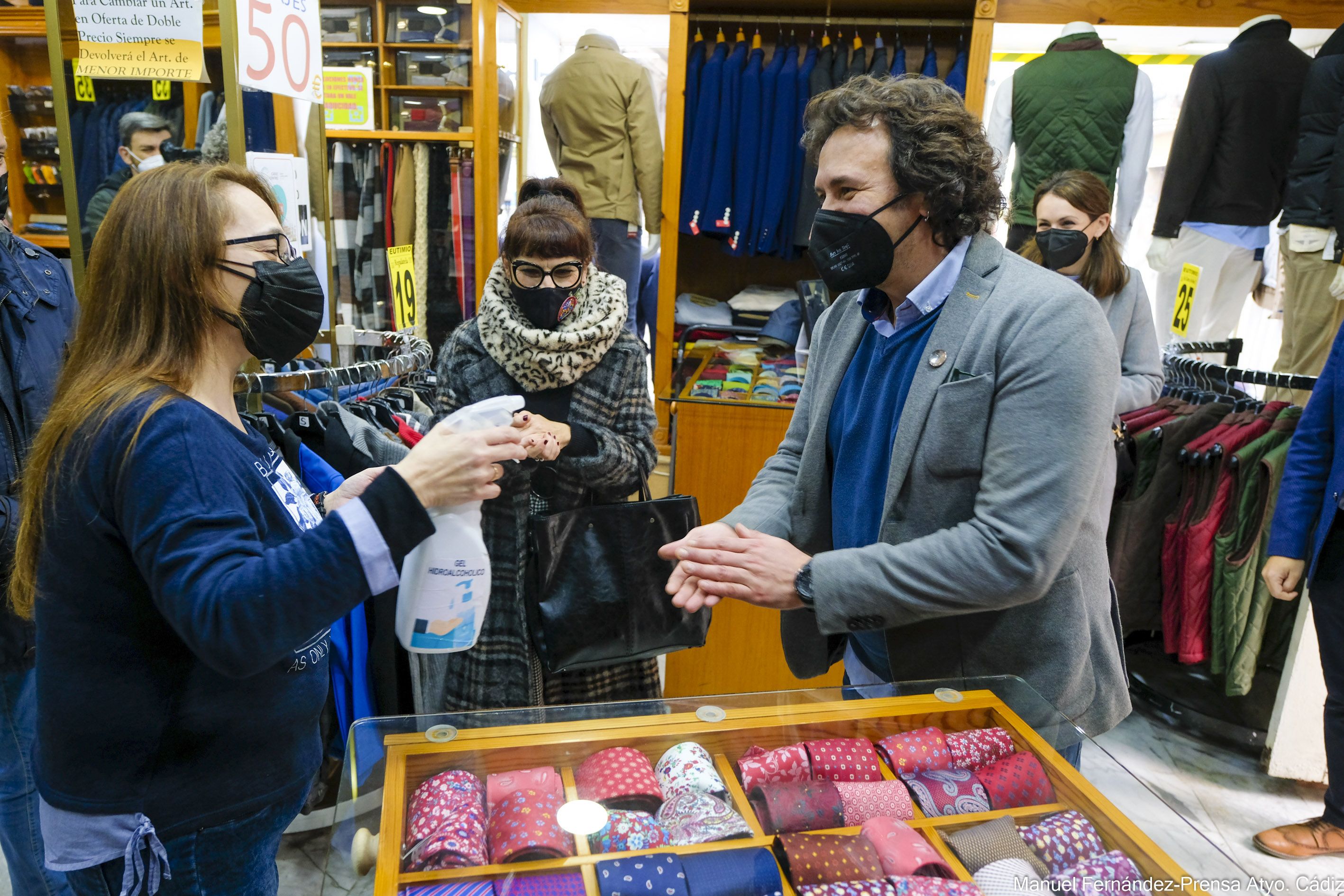 El alcalde de Cádiz, José María González, y la concejala de Comercio, Monte Mures, han visitado locales comerciales y de restauración del centro histórico y de Puertatierra para conocer de primera mano la situación por la que atraviesan estos castigados sectores con motivo de la crisis sociosanitaria y económica ocasionada por la pandemia de Covid-19 y ver también qué medidas se pueden adoptar en beneficio de los mismos.