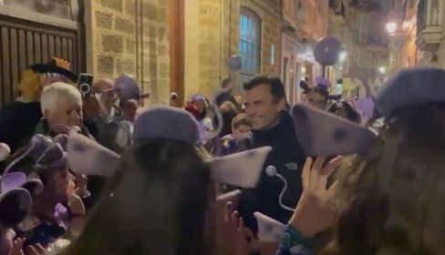 Bruno García, alcalde de Cádiz, está viviendo su primer Carnaval como regidor de la ciudad. Eso siempre supone un reto por tener que aguantar alguna letra crítica, pero está demostrando su buen humor incluso cuando le cantan algo cara a cara.