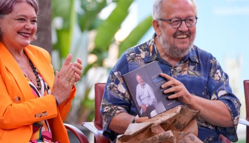 Compañeros como Aída R. Agraso, la subdelegada del Gobierno Blanca Flores, el cantautor portuense (Premio Nacional de Música) Javier Ruibal o la ex ministra Bibiana Aído estaban entre el centenar largo de asistentes que dio forma de palabras, obsequios y ovaciones a su cariño por el escritor.