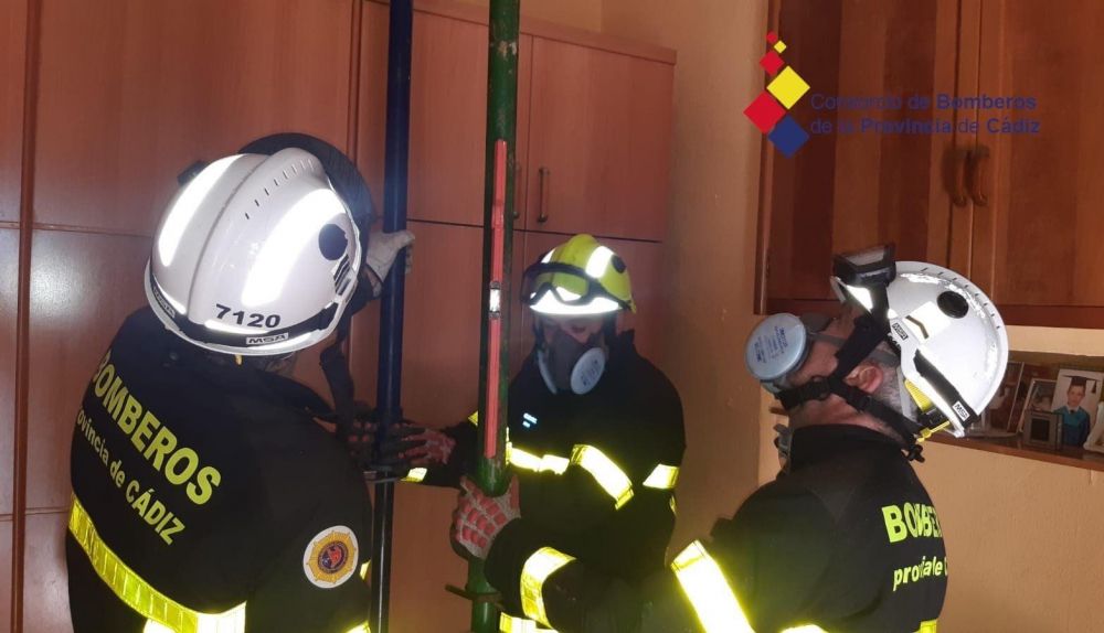 En una nota, el Consorcio explica que los bomberos han asegurado, retirado y limpiado toda la zona de los escombros desprendidos del techo de escayola. Se procedió a colocar cuatro puntales, ubicándolos en las esquinas y dejando zona de paso, ya que es el lugar donde el abuelo y la nieta ven la televisión. Bomberos ha podido comprobar la actitud de vecindad y de ayuda entre los vecinos del inmueble.