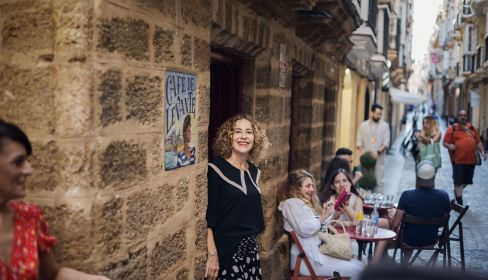 En ese recorrido vital, el Café de Levante, abierto en 1992 en la calle Rosario, ocupa un lugar central. Torres relataba cómo el proyecto nació casi por casualidad, tras una etapa dedicada a la moda y al diseño, y cómo aquel antiguo bar de pescadores fue transformándose en un espacio cultural único, decorado por ella misma y lleno de recuerdos, fotografías y obras vinculadas a la literatura, el cine y la música. Por sus mesas pasaron figuras como Fernando Quiñones, Caballero Bonald, Paco de Lucía o Almudena Grandes, convirtiendo el local en punto de encuentro de creadores y amantes de la cultura.