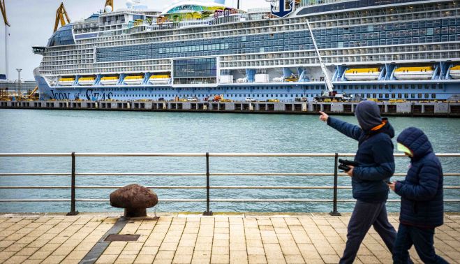 El Icon of the Seas está amarrado para una revisión técnica previa a su inauguración, prevista en Miami dentro de un mes con un crucero navideño a través del Caribe.