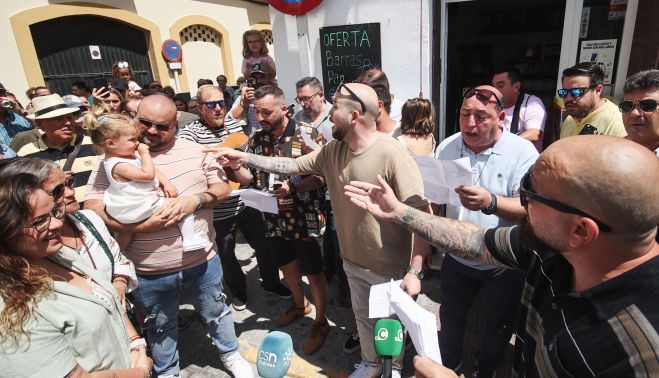 Los clientes y turistas que iban el pasado jueves a tomar el aperitivo o encargar un pollo al Bar Nuestro de Cada Día de Cádiz, contiguo al freidor La Coñeta —ambos en la muy viñera calle de La Rosa—, se encontraban una escena particular el primer jueves de junio.