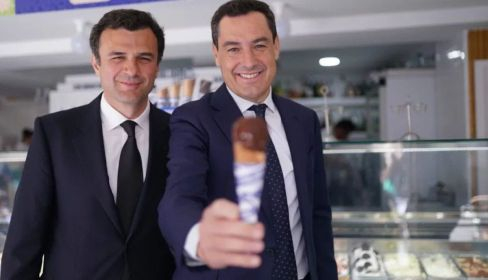 Pero no es lo único que ha hecho. El presidente se ha dejado ver, junto a Bruno García, candidato a la alcaldía del PP a la Alcaldía, en el Salón italiano, establecimiento recién reformado que cumple 83 años elaborando helados en la calle Ancha. Allí no se ha podido resistir a los topolinos, ese helado de nata cubierto de chocolate y barquillo que toman generaciones de familias gaditanas.