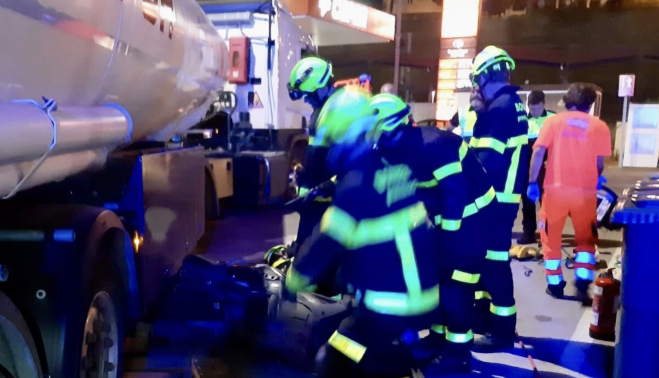 Un camión cisterna, que no se percató de la moto, acabó arrollando al vehículo en la avenida de Astilleros.