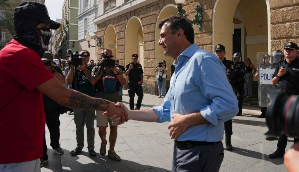 EN DIRECTO | Manifestantes de la huelga del metal acuden al Ayuntamiento y el alcalde de Cádiz, Bruno García, sale a hablar con ellos