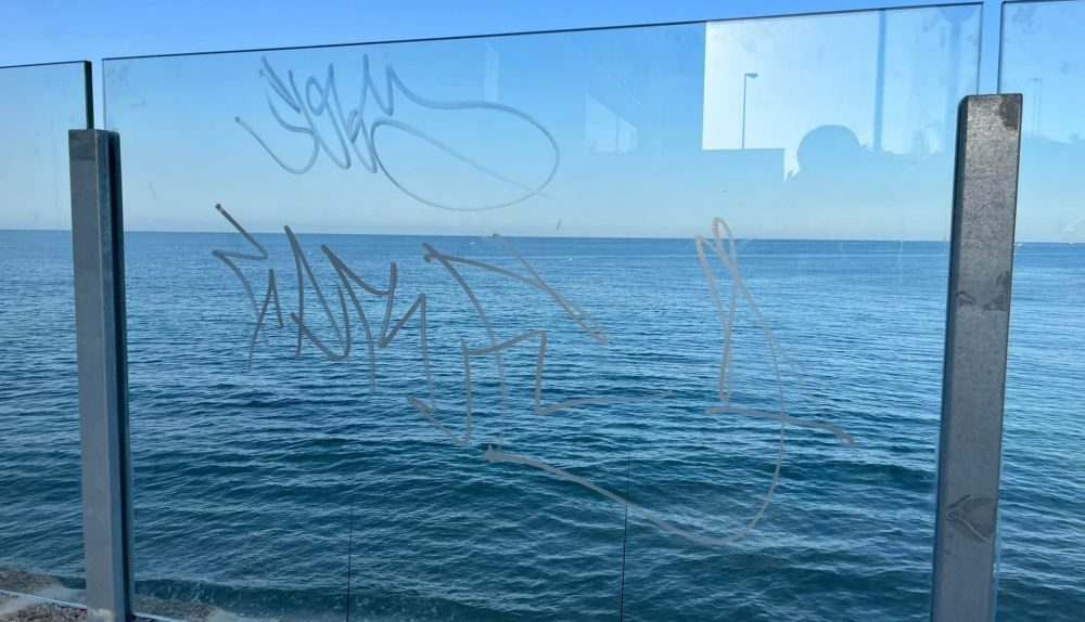 El perfil Cádiz Abandonada, dedicado a denunciar gráficamente los desperfectos de la ciudad en redes, ha compartido unas fotos en las que pueden observarse las primeras pintadas a la barandilla acristalada del Paseo para la que el Ayuntamiento de Cádiz ha invertido 93.839,49 euros. Otro ejemplo de falta de civismo con el mobiliario urbano gaditano.