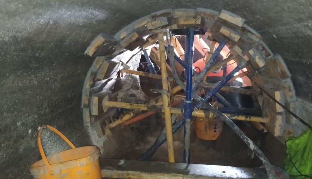 Debido al lugar en el que se encuentra situado el socavón y la influencia de las mareas en el mismo se han organizado los horarios de trabajo coincidiendo con la marea baja. Está previsto que la ejecución de los mismos dure toda la semana, una reparación que comporta gran dificultad por encontrarse a 6 metros de profundidad. Para realizar los trabajos es necesario acceder desde el propio tubo mediante una técnica propia de minería debido a la profundidad y el espacio disponible.