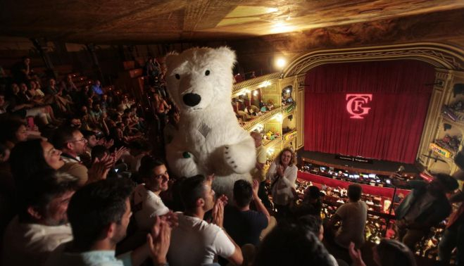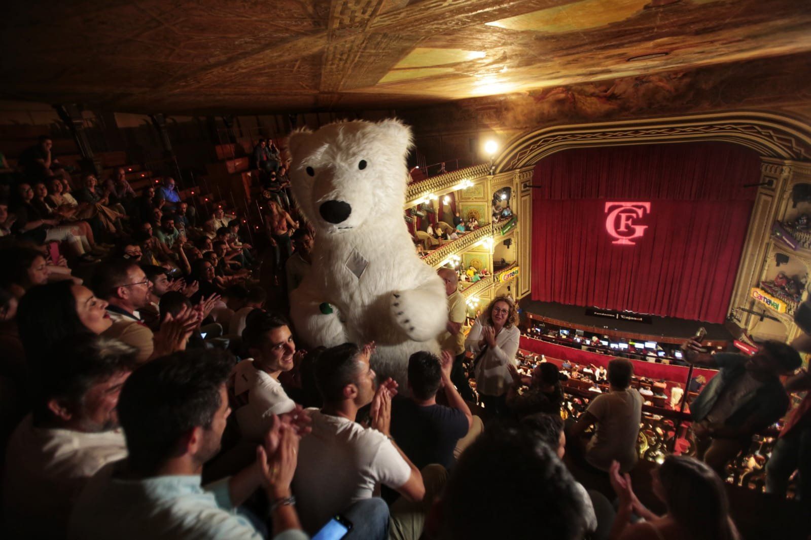 El Gran Teatro Falla ha sido el escenario que ha acogido su esperado regreso. "Yo también te he echado de menos, osito de la cabalgata", ha comentado Lola Cazalilla, delegada de Cultura y Fiestas del Ayuntamiento de Cádiz.