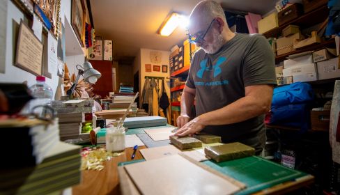 Desde hace un año, ha incorporado talleres de encuadernación y cartonaje para las personas interesadas en este mundo en el que lleva inmerso toda su vida. Con un pincel en la mano, Manuel dice que, ahora, los jóvenes buscan otro tipo de trabajos para poder conciliar. En su caso, segunda generación, cuando se jubile, el taller cerrará sus puertas.