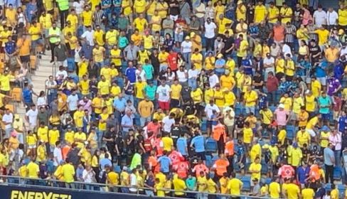 El suceso ha ocurrido en el minuto 41', 60 segundos después de que el equipo amarillo marcase su primer gol del partido. El accidente casi coinciden con la celebración del gol desde la grada.