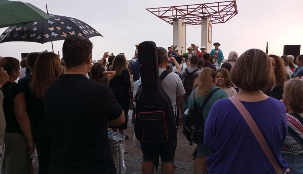 La lluvia y el aviso amarillo por tormentas no ha impedido que los amantes del Carnaval se reunieran este sábado 7 de septiembre en el Paseo Marítimo de Cádiz. Bajo un cielo nublado y entre paraguas, se ha celebrado el Paseo de Carnaval, un evento que ha subido al escenario a más de 20 agrupaciones del Concurso Oficial de Agrupaciones del Carnaval de Cádiz (COAC) tanto de la categoría de adultos como de la cantera.