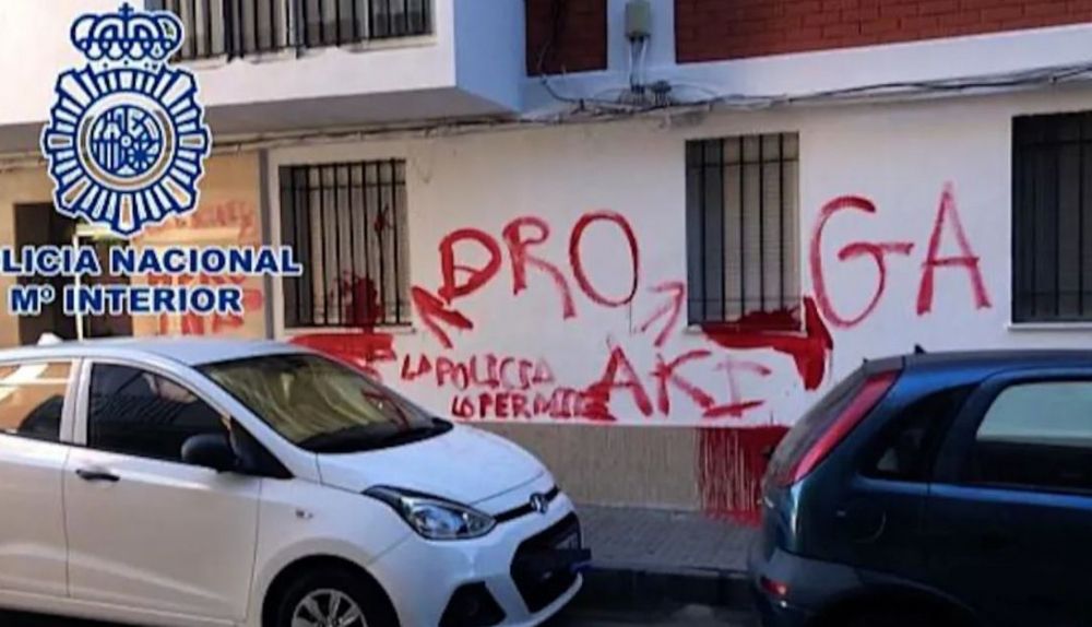 Agentes de la Policía Nacional han detenido una persona de 53 años vecino de Cádiz como presunto autor de un delito de tráfico de drogas. Los vecinos de un portal del barrio de Loreto de la capital decidieron señalar con una pintada en la fachada la localización donde se vendía droga ya que estaban cansados de la afluencia de drogadictos en su calle. En el mensaje escrito con letras grandes con pintura roja se distiguía: "Se vende droga aki".