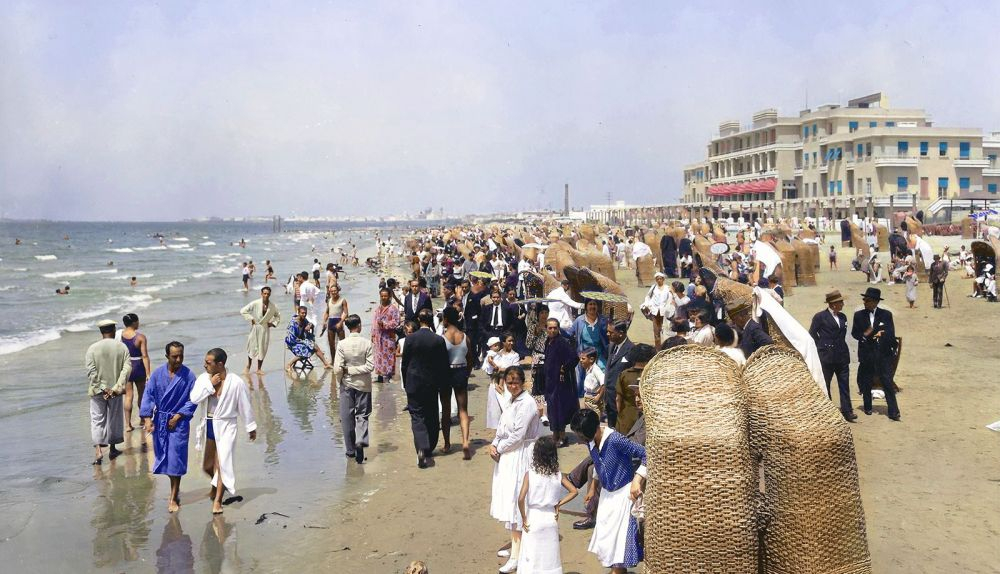 Otro detalle curioso es la ausencia de sillas y tumbonas, ya que en aquella época lo que se estilaba eran sillones altos de enea con techo incorporado a modo de concha.
