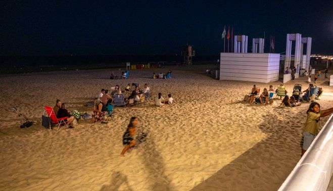 Ambiente hasta bien entrada la noche en la playa Victoria en Cádiz, este pasado sábado de Trofeo Carranza.