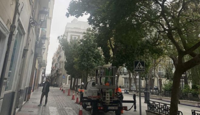 "Están podando los árboles en la plaza de Mina para evitar que los pasos se dañen con las ramas de los árboles. Nos parece muy grave que por una procesión que pasa por esa calle tengan que llevar a cabo esa poda al arbolado que está en pleno crecimiento". Son palabras del colectivo ecologista Agaden, que denuncia una poda que está siendo motivo de comentario en Cádiz.