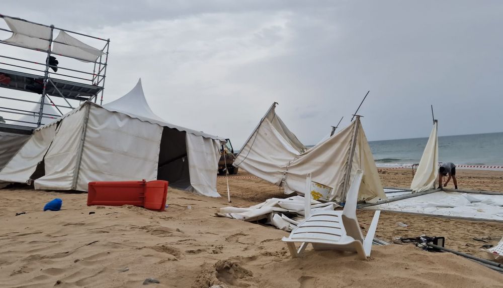 Por otro lado, el fuerte viento también ha afectado a las instalaciones del Cádiz Arena, de fútbol playa, al tirar las carpas y doblar la torre, suceso que ha ocurrido en torno a las 8:00 horas. La torre ya se ha enderezado y se continúa trabajando para tener de nuevo las instalaciones operativas antes del fin de semana.