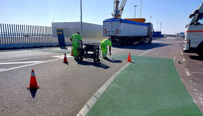 La Zona Franca de Cádiz pronto tendrá un carril bici en su recinto interior para facilitar el desplazamiento a las personas que frecuentan el lugar. La infraestructura, muy demandada por empresas, clientes y usuarios de las instalaciones, será una realidad gracias a la empresa Señalizaciones Ortega, que está culminando el pintado del pavimento y la señalización correspondiente en las calles principales del recinto fiscal.