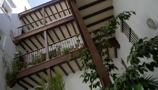 De aquellos dos cuartos -donde Loli instaló el dormitorio principal y el comedor-, pasaron a tener más habitaciones hasta que la Junta de Andalucía se hizo con la propiedad de la finca y se dispuso a rehabilitarla. "Fuimos los primeros en salir y los primeros que entramos en nuestra nueva casa", recuerda Loli con una sonrisa de oreja a oreja. Durante los años de rehabilitación, el matrimonio vivió primero en una casa de la calle Soledad y otra de la calle Ahumada y "no vivimos mal" pero "aquel día fue maravilloso", refiriéndose a cuando entraron de nuevo en su vivienda rehabilitada. Con los achaques de la edad, Loli se levanta y muestra orgullosa las tres habitaciones, el salón, la cocina y el cuarto de baño de su casa. Cuarenta años entre esas paredes y once desde su vuelta, ellos no se imaginan en otro sitio, con otra vida.