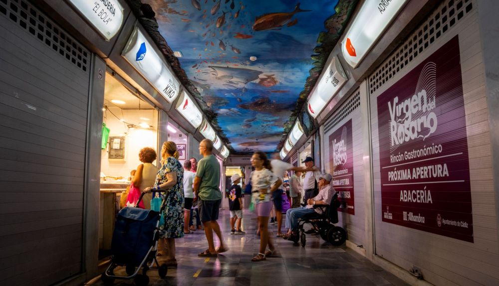 El 23 de junio de 2003, hace 22 años y unos pocos días, se inauguraba el mercado municipal de abastos Virgen del Rosario de Cádiz con algo más de una treintena de puestos dispuestos en un práctico rectángulo blanco. Años después, una decoración marina en el techo lo ensalzó.