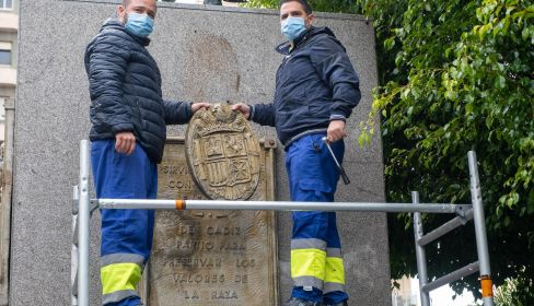 El Ayuntamiento de Cádiz ha procedido hoy a la retirada de simbología franquista en la ciudad. En concreto, del escudo oficial del Régimen que se encontraba situado en el podio de la estatua ecuestre en honor al general José de San Martín, en la plaza de San José.
