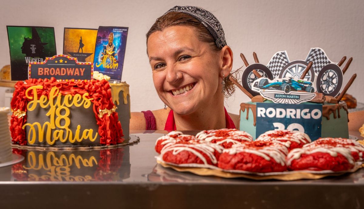 Su filosofía es clara: “Reparto felicidad en formato dulce”. Y lo hace a diario desde muy temprano, organizando pedidos, personalizaciones, compras, hornos y comunicación. “Trabajo por la mañana, pero en realidad trabajo todo el día”, comenta entre risas, mientras aguarda a que uno de sus clientes recoja una de las tartas personalizadas que ha elaborado.