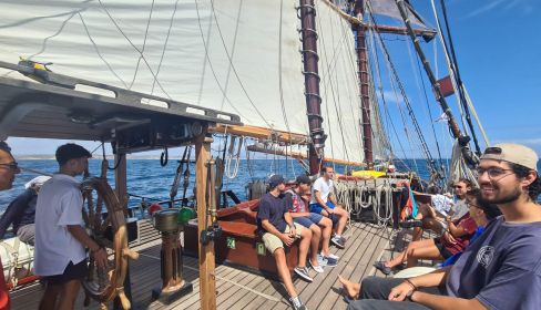 Al día siguiente, domingo 3 de septiembre, después de recibir formación en materia de seguridad y sobre los trabajos que irán desarrollando a lo largo de la travesía, participaron en la parada naval de la salida de la regata desde Lisboa y pusieron rumbo hacia el cabo San Vicente. Los jóvenes han manifestado que la travesía hasta ahora ha ido bien, con mucha lluvia a la salida de Lisboa y oleaje hasta el cabo de San Vicente.