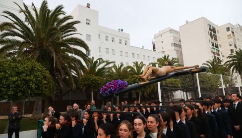 El acto reúne cada año a alumnos, antiguos alumnos, educadores, miembros de la Familia Marianista y numerosos devotos, que acompañan al Cristo en las distintas estaciones de la Pasión.