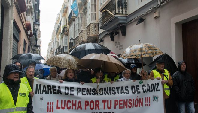 Los mayores siguen alzando la voz. Más de un centenar de jubilados han tomado las calles de Cádiz, a pesar del viento y la lluvia, con su reivindicación de unas pensiones dignas y contra la pérdida del poder adquisitivo de las prestaciones que reciben los jubilados en España. La Marea de Pensionistas ha ideado presentar mociones municipales en los ayuntamientos durante los próximos días contra el fomento de los planes privados de pensiones. Han manifestado su rechazo al "irrisorio" incremento del 0,25% y la mayor subida del IPCC "que ha dejado a muchos pensionistas en el umbral de la pobreza" debido a la "nefasta" política económica del Gobierno central. Por ello reclaman que la subida de las pensiones se haga de acuerdo con el IPC real. Desde la plaza de San Juan de Dios, frente al Ayuntamiento, han recorrido el casco histórico de la ciudad hasta el Centro de Día de Mayores de la calle Zaragoza, con parada reglamentaria frente a la sede del Partido Popular en la calle Cánovas del Castillo.