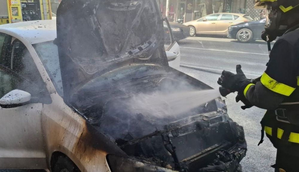Una vez estacionado, el coche ha comenzado a arder, afectando especialmente a la parte delantera del motor. Los bomberos han intervenido con rapidez para sofocar las llamas, evitando que el fuego se extendiera a otras zonas del vehículo o a elementos del entorno.