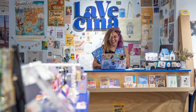 En una planta superior del local con cientos de objetos a la venta, La tienda de la vecina también acoge una pequeña agencia de comunicación. "Trabajamos con pequeños negocios, con marcas locales. Tratamos de ayudarles a llegar al mundo digital. Igual que cada día levantan la verja del negocio, les decimos que deben levantar la verja digital".