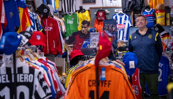 El propietario de Souvenirs Football asegura que la competencia es feroz y el boom comercial de hace unos años se ha estancado. "Yo no compro a coleccionistas ni camisetas sueltas".