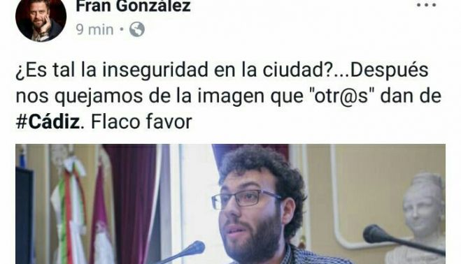 La portavoz del equipo de gobierno del Ayuntamiento de Cádiz, Ana Fernández, ha lamentado que el concejal del grupo municipal socialista, Fran González, haya querido utilizar “un tema tan grave como las agresiones que sufren las mujeres en espacios de ocio para intentar atacar torpemente al Equipo de Gobierno”. “Lanzar mensajes que fomentan la misoginia que pretende ocultar este drama es una tremenda irresponsabilidad”, ha acentuado la edil.