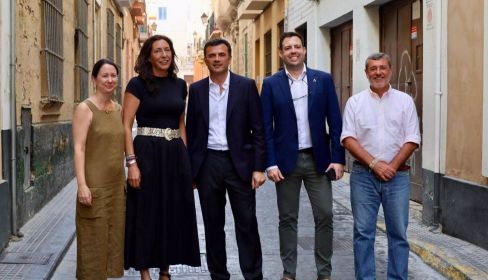 La consejera de Inclusión Social e Igualdad, Loles López, y el alcalde de Cádiz, Bruno García, han posado este lunes ante la fachada de la finca que acogerá las obras gracias a una subvención de 1,2 millones de euros. Contará con 22 plazas cuando esté inaugurado, previsiblemente en 2026.