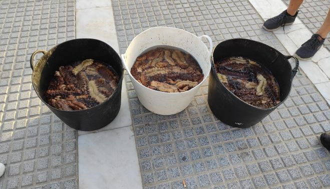 Las holoturias intervenidas fueron entregadas al personal del servicio de vigilancia y salvamento de la playa de La Caleta, que las cargó en una embarcación semirrígida y procedió a devolver los ejemplares a su hábitat natural.