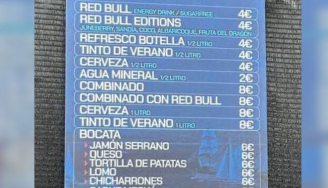 David de la Cruz ha compartido en sus redes una foto que "me han mandado muchos vecinos". En la misma aparecen los precios de las bebidas y comidas de una carpa que se ha montado con motivo de la Gran Regata de Cádiz.