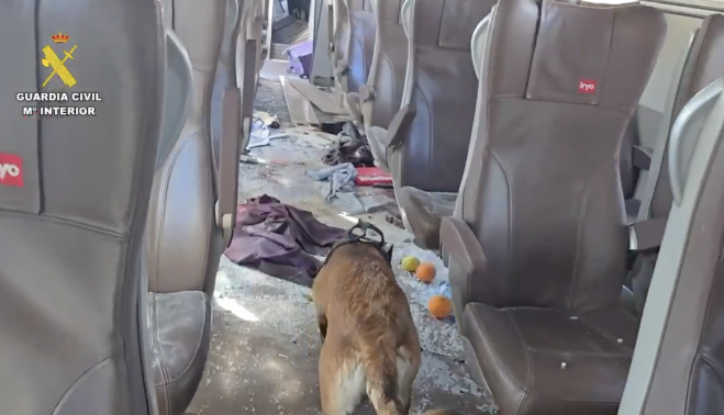 La Guardia Civil ha compartido vídeos en los que pueden verse tanto la labor de estos perros como los daños en el interior de los trenes. Las imágenes revelan vagones arrancados por la fuerza del impacto, elementos metálicos retorcidos y zonas totalmente arrasadas donde continúa la búsqueda de restos humanos y pistas relevantes para esclarecer lo sucedido.