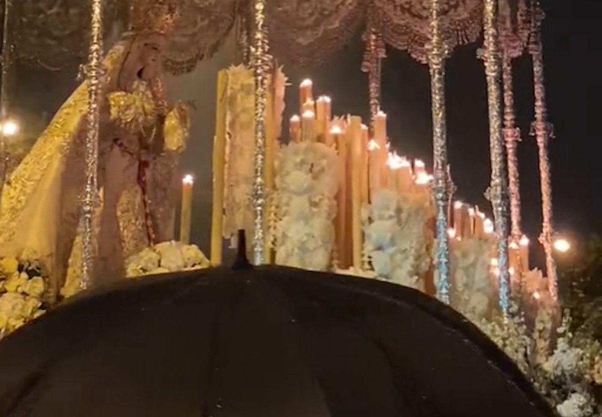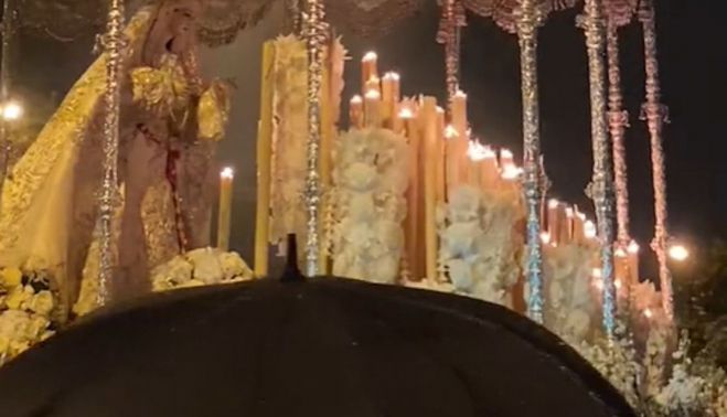 Las mismas mujeres que lanzaron insultos al hombre, instantes después exclamaron "guapa" y "olé" al paso de la Virgen. Sin embargo, en lugar de calmarse, volvieron a dirigirse al individuo con tono elevado, exigiéndole para que cerrara el paraguas, en un momento en que la lluvia era visible.