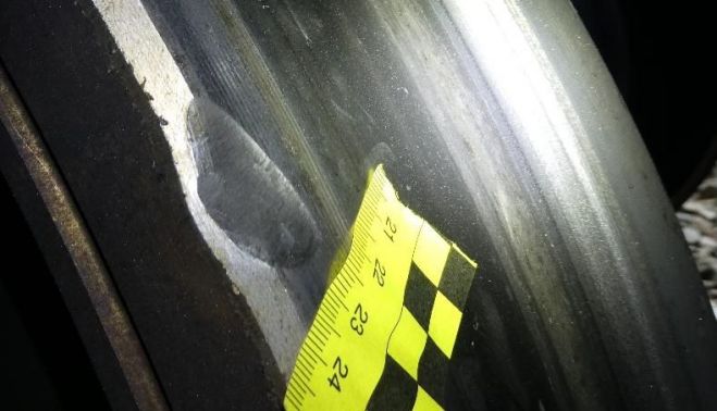 El documento técnico detalla que las muescas se localizaron en los coches 2, 3, 4 y 5 del Iryo y que corresponden a impactos contra la cabeza del carril en el punto donde se habría interrumpido su continuidad. La secuencia descrita señala que, al soportar de forma súbita el peso de la rueda, el tramo anterior a la fractura pudo descender ligeramente, generando un desnivel con la parte posterior que habría golpeado la llanta.