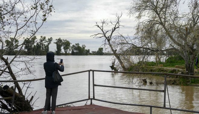 Según las previsiones, el nivel del río se mantendrá elevado durante este domingo, aunque con una ligera bajada, mientras que el lunes se espera el paso de la punta asociada a la segunda crecida generada por la borrasca Marta.