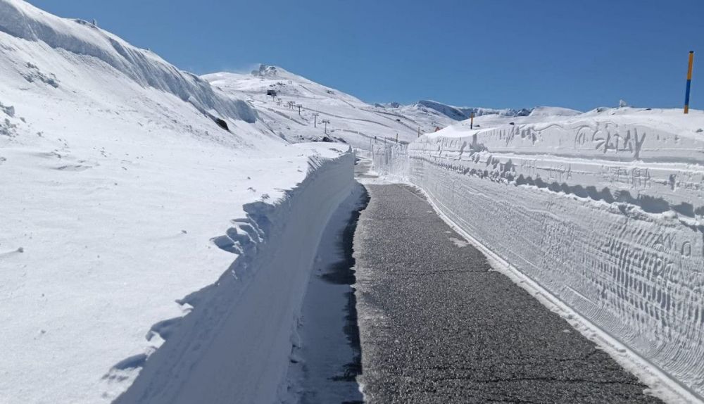A cuatro días del comienzo de la primavera, en este paraíso para los amantes de los deportes de invierno se observan muros de nieve en las carreteras y vehículos y locales enterrados en el manto blanco.