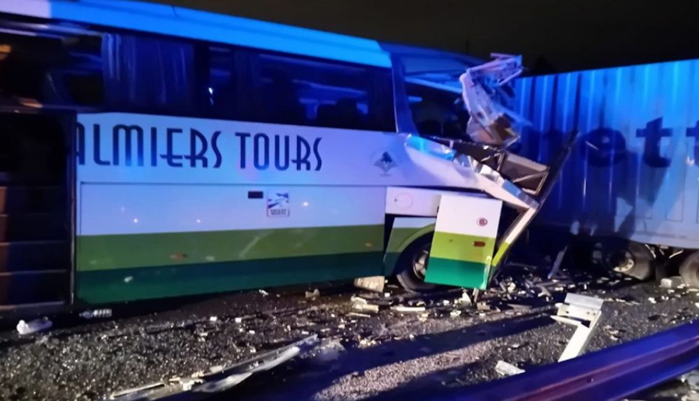 Nadie ha perdido la vida tras la colisión que ha dejado al autobús volcado y destrozado por la parte delantera en el kilómetro 250.