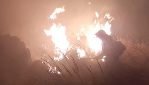Además, por tierra, combatían contra el fuego aproximadamente un centenar de efectivos, principalmente cuatro brigadas de refuerzo o "bricas", siete grupos de bomberos forestales y cuatro técnicos de operaciones, junto con cuatro camiones autobomba; uniéndose al dispositivo el Grupo Regional de Mando.