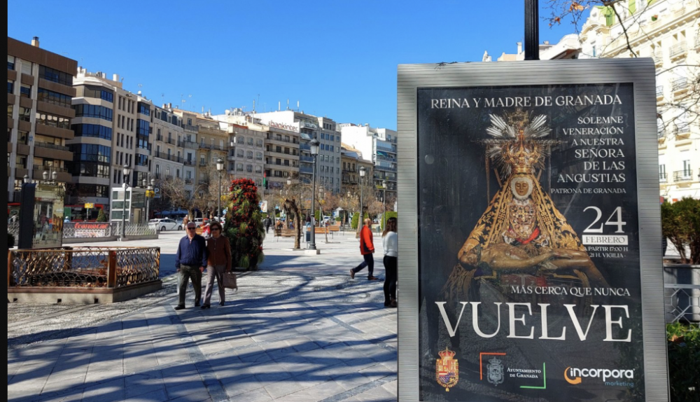 El próximo 24 de febrero, la Patrona de Granada, la Virgen de las Angustias, volverá a su basílica después de tres meses en los que ha estado sometida a un proceso de restauración. En estos días, el regreso ya se está celebrando en las calles a través de los Mupis publicitarios instalados en el centro urbano, en los que se exponen el cartel creado por la vuelta a su basílica de esta imagen.