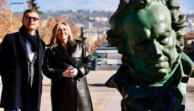 Las réplicas de los galardones fueron instaladas el pasado miércoles con motivo de la celebración de la gala de los Premios Goya, el próximo 8 de febrero, en el Palacio de Exposiciones y Congresos de Granada.