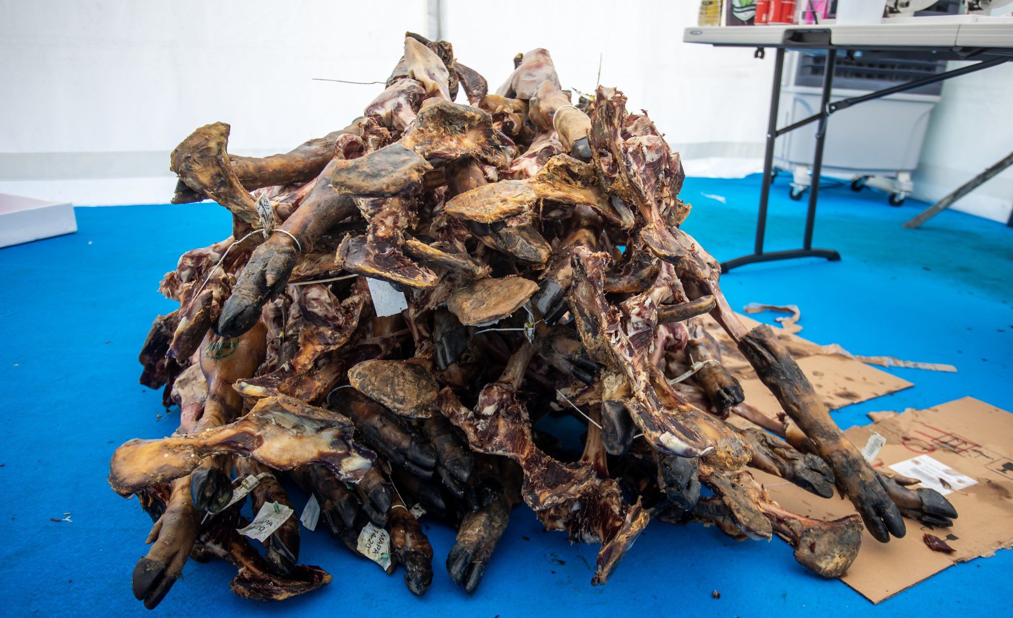 50 personas han ayudado en el reto a Bautista, que además se ha servido de nueve cuchillos bien afilados para lograr la proeza.