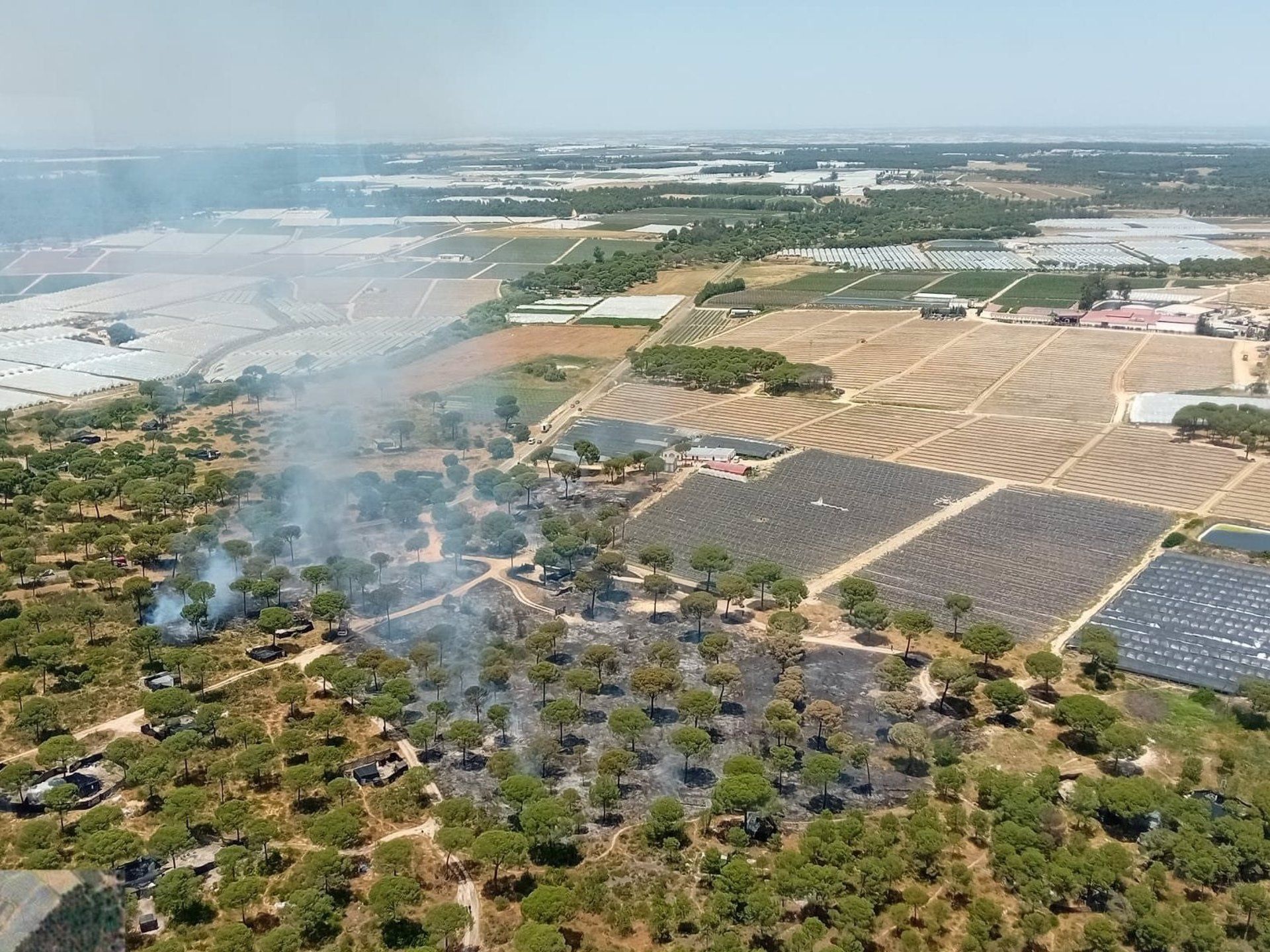 En total, a lo largo de la semana han sido tres incendios declarados cerca de asentamientos. En Lucena del Puerto, Huelva Acoge explicaba que fueron "afectadas 20 personas migrantes temporeras trabajadoras del campo onubense. Lo han perdido todo". Era el fuego que consumía las infraviviendas de Gago II.