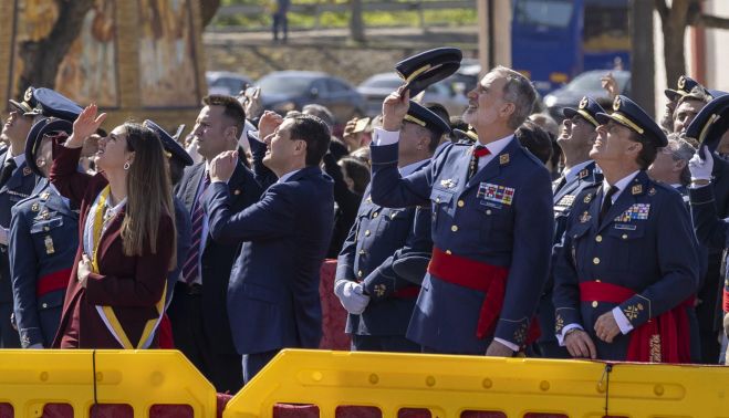 El programa continuó con un acto militar en la explanada junto al Coso del Descubrimiento. Felipe VI pasó revista a la fuerza y escuchó la intervención del general Juan Francisco Sanz, jefe del Servicio Histórico y Cultural del Ejército del Aire y del Espacio, quien destacó que “ese espíritu de audacia e innovación, que llevó a España a ser pionera en la aviación del siglo XX , es el mismo que nos hace relevantes e imprescindibles en la escena global del siglo XXI”.