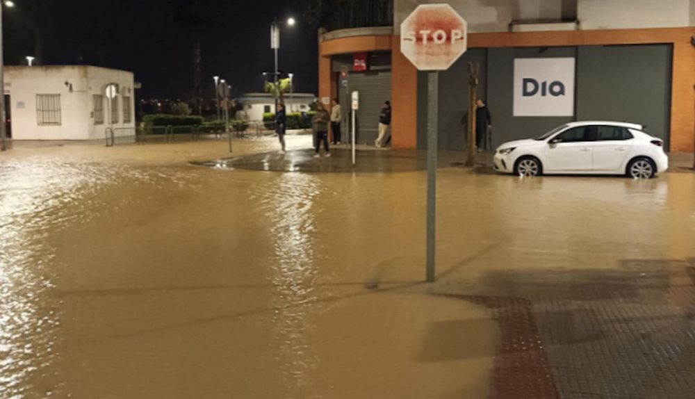 Impresionantes imágenes circulan por las redes sociales de San Juan del Puerto, en Huelva. El río Tinto ha comenzado a anegar varias calles tras haberse desbordado por las intensas lluvias que afectan a la provincia.