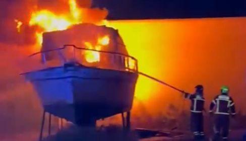 A las pocas horas, de madrugada, los bomberos recibieron otro aviso. Una de las embarcaciones ubicadas en el puerto de El Terrón, en el municipio de Lepe, estaba en llamas. Los efectivos se desplazaron al lugar de los hechos donde procedieron a la extinción.